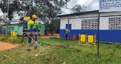 Desmalezamiento, limpieza general y recolección de desechos sólidos son parte de las acciones ejecutadas, a propósito de un plan permanente de atención y recuperación de infraestructuras escolares.