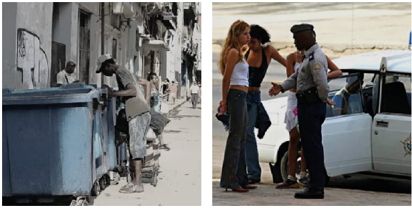Un país donde el fracaso humano ha sido elevado a Virtud Nacional y la Cobardía Sistematizada a política de Estado ese país se llama Cuba!! Con una dictadura de casi 67 años el pueblo cubano se han convertido en seres moralmente atrofiados que han convertido la rendición en su digna! El hambre y la miseria que se vive hoy en Cuba han convertido al pueblo cubano en un pueblo sumiso, dónde el régimen dictatorial cubano hace experimentos con su población similar a los que experimentaba Iván Pavlov llamado el Condicionamiento Clásico,que demostró que los perros podían ser condicionados a salivar ante el sonido de una campana, si ese sonido se presentaba repetidamente al mismo tiempo que les daba comida! La falta de alimentos a obligado prácticamente al cubano a arrastrarse por conseguir una ración de comida, esto ha sido uno de los adoctrinamiento más exitosos a nivel mundial, convirtiéndolo en cómplice entusiasta y activo de su propia aniquilación, han hecho de la pobreza una forma de vivir, la exhiben y la monetizan, la cola para la adquisición de alimentos se ha convertido en un Monumento Nacional cubano, es el símbolo de un pueblo pasivo y conformista que asombra al mundo, muchos padres de familia prefieren vender o entregar a sus hijas sexualmente por una lata de sardinas a sus verdugos antes que enfrentarlos, el hambre en Cuba ha hecho que la depravación sexual se haya convertido en una de las más grandes de Latinoamérica, el sexo ya no es intimidad, ni pasión entre el matrimonio, se convirtió en una forma de supervivencia, hoy día en Cuba eso se ha convertido en una degradación jamás vista en país latinoamericano, padres que entregan a sus hijas a turistas por una crema dental, un jabón o una bolsa de detergente,madres que enseñan a sus hijas a maquillarse y a vestirse coquetamente no para jugar sino para cotizar en el mercado del deseo extranjero, el nivel de depravación es tan doloroso e inmoral que muchos esposos envían a sus esposas a acostarse con algún extranjero por algun pan, un arroz o algunos pesos mientras el marido espera en la puerta calculando la ganancia y sacando cuenta de lo que va comprar con ese dinero o como preparar ese alimento, entre los cubanos no existe la confianza, se traicionan los unos a los otros, el régimen cubano los ha criado y adoctrinados para ser delatores de sus mismos vecinos, el éxito o la prosperidad de un vecino no se celebra ni se admira, se denuncia y en otros casos se roba.