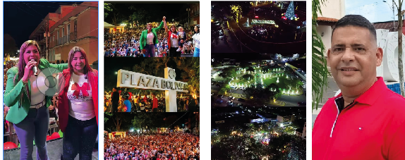 Ovidio Hernández, acompañado de su equipo de trabajo, Rosibel Martinez, Oliver Cedeño, el Morocho Duglas, Mauricio,entre Otros. coordinó la Plaza Bolívar, cuidando cada detalle del encendido y la ornamentación.