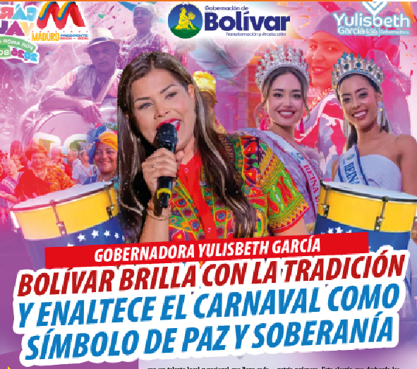 Más allá del brillo, las serpentinas y la música, esta festividad representa la trascendencia social de un territorio que no se rinde. El Carnaval en Bolívar es la expresión genuina de un pueblo que trabaja la tierra, produce en sus industrias y lucha día a día por la construcción de una patria próspera. Esta alegría que desborda las calles es el reflejo de la estabilidad lograda con esfuerzo; es el derecho ganado a vivir en paz y en democracia. Para la Gobernadora Yulisbeth García, la fuerza del trabajador bolivarense y la creatividad del cultor se funden en la energía indetenible de una región que, mientras celebra sus raíces, sigue impulsando el motor productivo de la nación con la frente en alto.